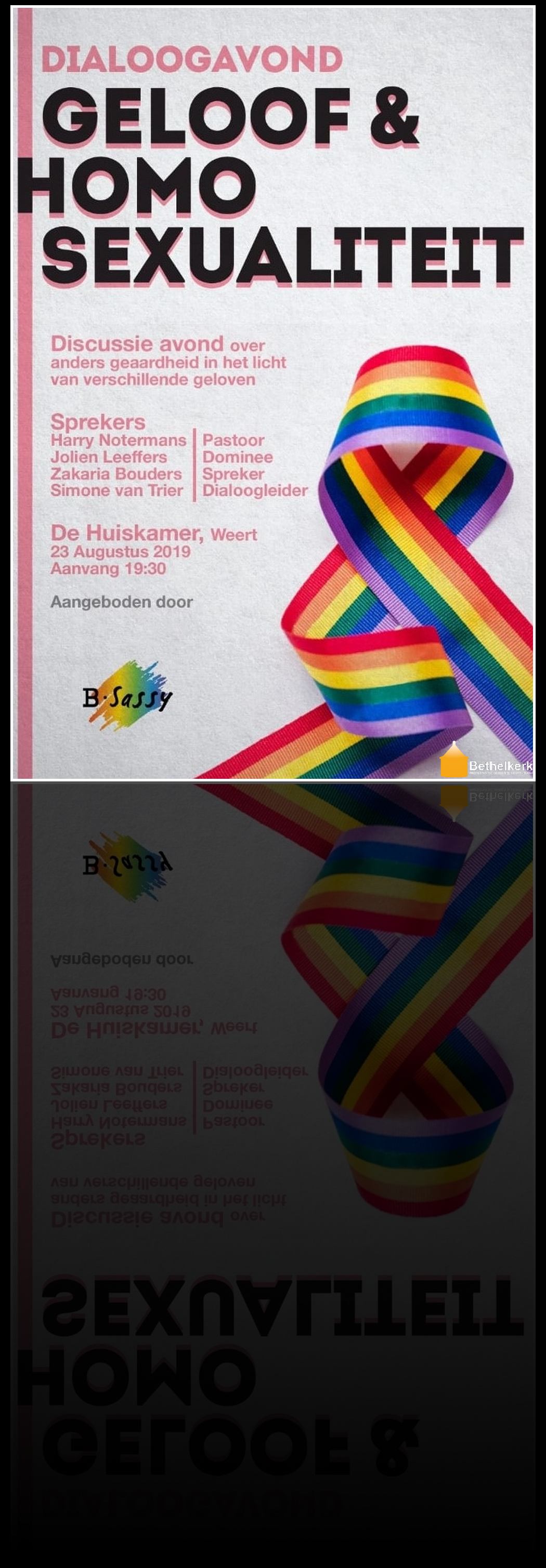 Vrijdagavond 23 augustus 2019 in Theater De Huiskamer in Weert een dialoogavond over Geloof en Homosexualiteit.