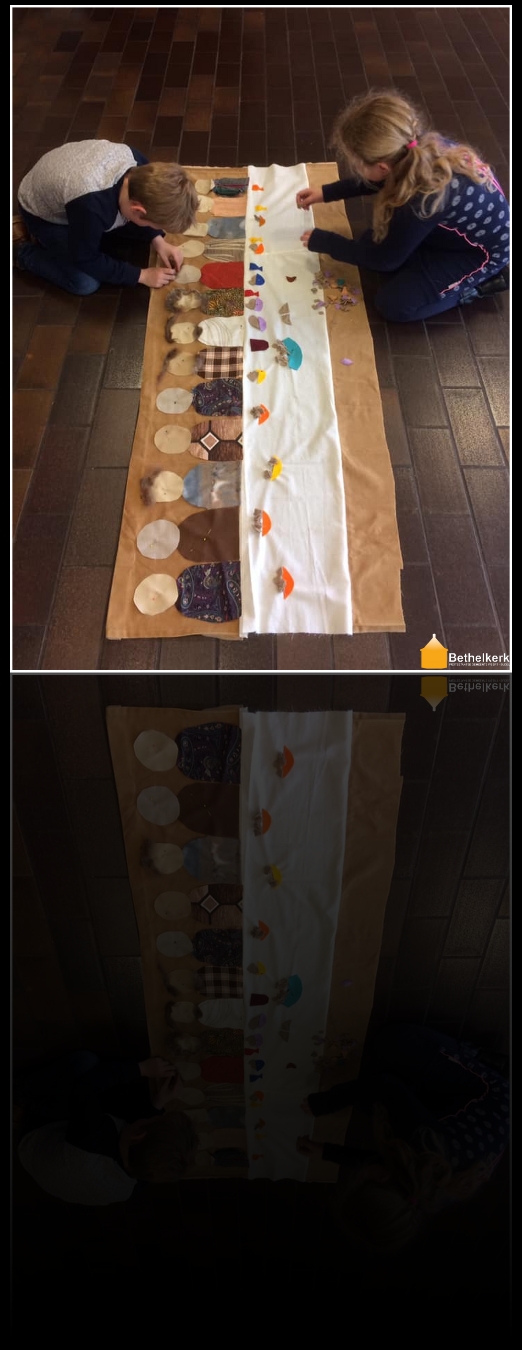 Daarna kwamen de kinderen van het koortje. Het verhaal van vandaag ging over het Laatste Avondmaal. We hebben heel veel verschillende afbeeldingen daarvan bekeken en vervolgens zijn we zelf aan de slag gegaan.