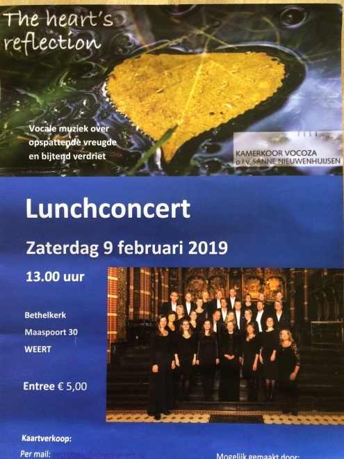 2019-02-09 Kamerkoor Vocoza9 februari 2019 deel bericht:[bws_pdfprint display=”pdf,print”] Kamerkoor Vocoza Op zaterdag 9 februari 2019 verzorgde het koor Vocoza uit Amsterdam een lunchconcert in de Bethelkerk. Het koor was op weg naar Maastricht voor een korenfestival. Leuk dat we in Weert even mochten meegenieten! Aantal keer bekeken 84 Vorige Bericht 2019-02-18 Foto's van de Bijbel Volgende Bericht 2019-02-11 MDO Bericht uit Colombia: Geen eten