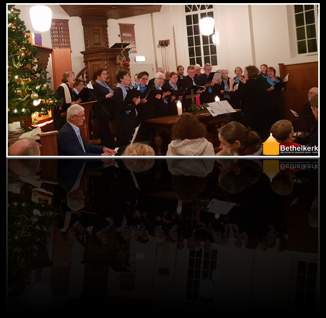 Op maandagavond 24 december 2018 zat het protestantse kerkje van Budel helemaal vol vanwege de kerstavonddienst. Het Bethelkoor, deze avond onder leiding van Heleen Kunneman, werkte aan deze dienst mee. We zongen heel veel bekende kerstliederen.