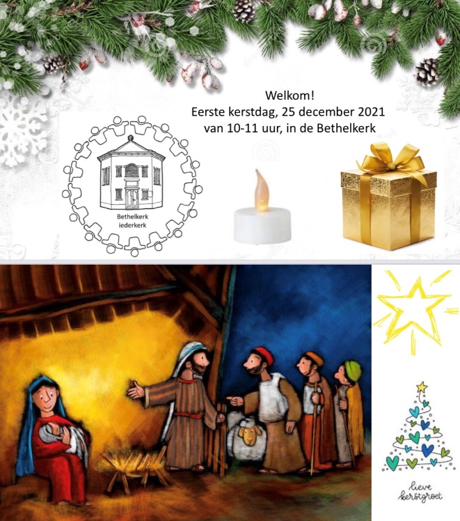 Bethelkerk iederkerk Viering Eerste kerstdag 25 december 2021 om 10 uur