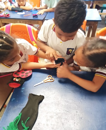 De leerkracht van de tweede klas heeft vorige week haar project afgerond en de kinderen waren zeer enthousiast. Ze hebben samen handpoppen gemaakt.