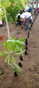We gaan het project doen met de kinderen uit de derde, vierde en vijfde klas. Dat zijn 66 kinderen. Afgelopen maandag hebben de kinderen uitleg gekregen hoe ze de grond moeten bewerken. Ook heeft elke kind 3 plastic zakken die ze gebruiken om planten in op te laten groeien gevuld met zand vermengd met meststoffen. Aji [zoete paprika] tomaten en aubergine zaadjes hebben ze verdeeld over de drie zakken. De zakken met de zaadjes hebben ze vervolgens in onze nieuwe groentetuin geplaats. We gaan eerst de kinderen begeleiden hoe ze de zaadjes moeten onderhouden. Elke groente heeft zijn eigen manier van groei en ze moeten leren hoe ze dat moeten doen. Alles wordt door de kinderen gedetailleerd beschreven zodat ze later een draaiboek hebben om het thuis over te doen. Zodra de eerste oogst in zicht komt krijgen de kinderen weer een aantal zakken gevuld met zaad maar dan gaan deze mee naar huis. We hebben gekozen voor deze manier omdat zo elk kind deel kan nemen. Lang niet elk kind heeft grond beschikbaar om iets te zaaien. We moeten nog uitwerken wat we met de opbrengst gaan doen of we die mee naar huis geven of dat we deze door de kinderen laten verkopen. Zo zouden ze continu door kunnen gaan met zaaien en daaraan ook nog geld over houden. Maar laten we eerst maar eens zorgen dat alles gaat verlopen zoals we willen. We zitten in de tropen en het klimaat is iets heftiger en onvoorspelbaarder dan In Nederland. Al krijg ik het idee dat we wel naar elkaar toegroeien wat klimaat betreft.