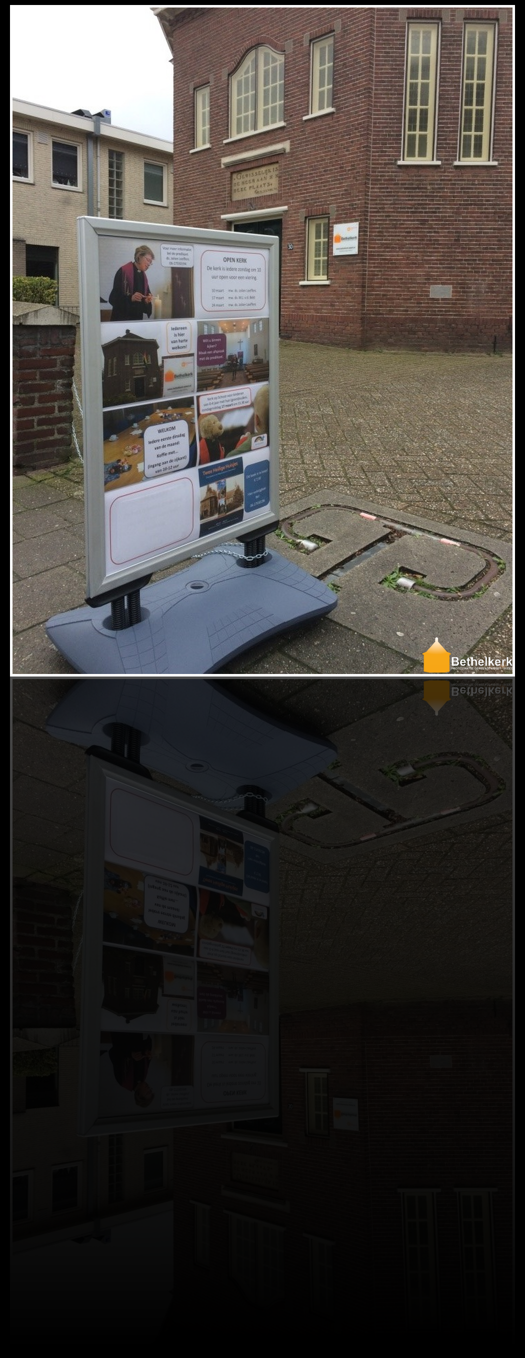 Het bord is bedoeld om ‘reclame’ te maken voor de kerk en de verschillende activiteiten.