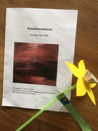 Het Bethelkoor verleende haar bijdrage aan deze dienst en de kinderen speelden een paasspel aan de hand van een paasverhaal.