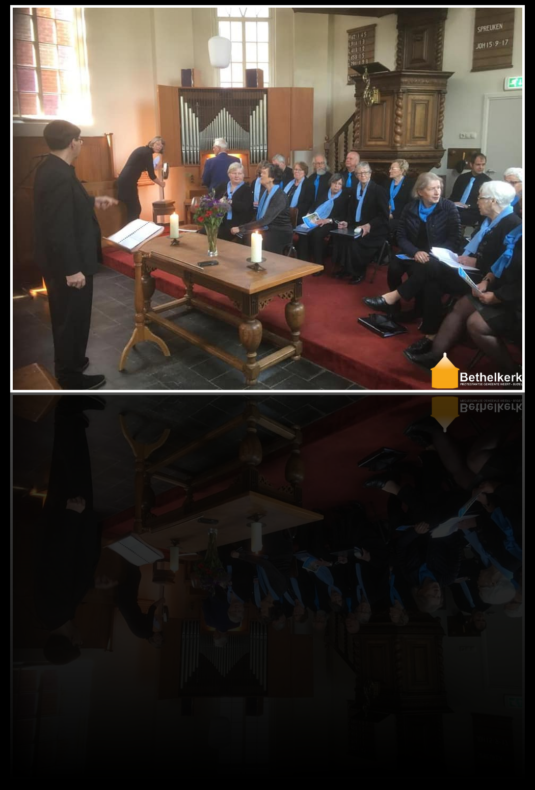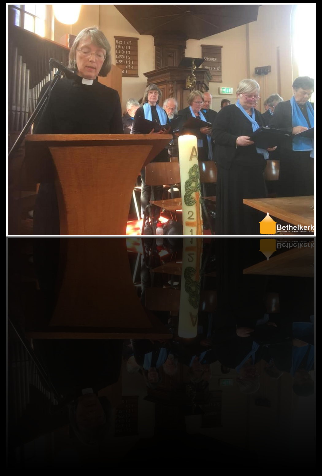 2019-04-14 Zangdienst op weg naar Pasen!14 april 2019 deel bericht:[Bethelkerk-Delen] [bws_pdfprint display=”pdf,print”] Het Bethelkoor zong op 14 april 2019, een week voor Pasen, de koralen uit de Mattheus Passie van Bach. Met daar tussendoor de lezingen uit het evangelie en veel samenzang. Een prachtige dienst op een mooie locatie! Aantal keer bekeken 77 Vorige Bericht 2019-04-12 Kaarsen versieren met de jeugdgroep Volgende Bericht Zondag 21 april 2019