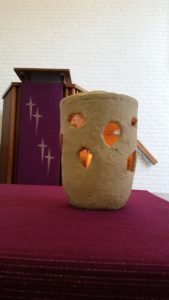 de kinderen gaan – met het licht van de paaskaars – naar de kindernevendienst